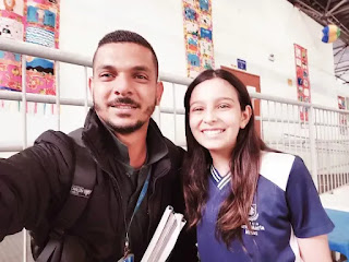 | Júlia Ferreira e seu professor, do Colégio Espanhol Santa Maria Minas (Divulgação/site oficial da escola) |